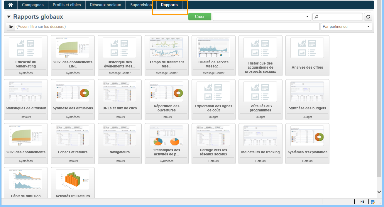 Sélectionnez l'onglet Rapports de l'interface Adobe Campaign.