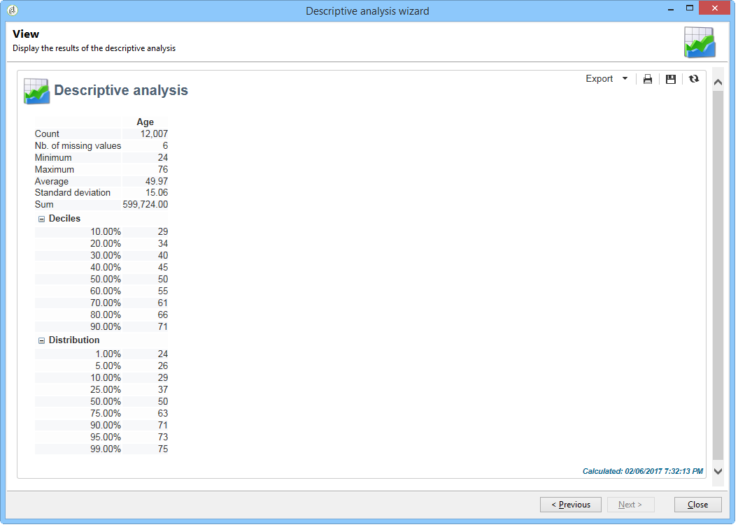 데이터베이스의 데이터에 대한 통계를 만들려면 전용 마법사를 사용하여 설명 분석 보고서를 만들고 필요에 맞게 컨텐츠와 프레젠테이션을 조정합니다.