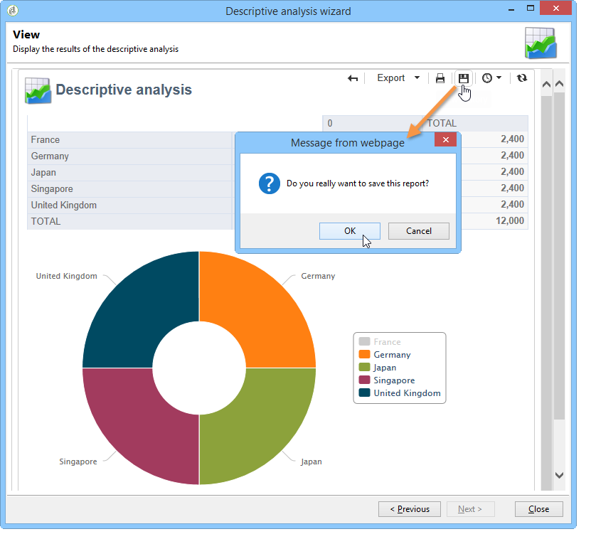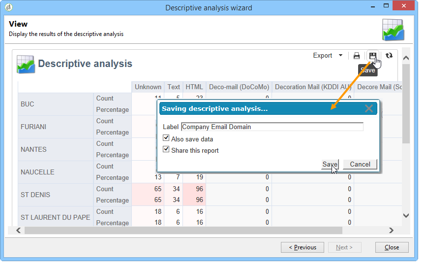 선택 Also save data 보고서의 내역을 생성하고 저장할 때 보고서의 값을 보려면, 자세한 내용은 분석 보고서 보관.