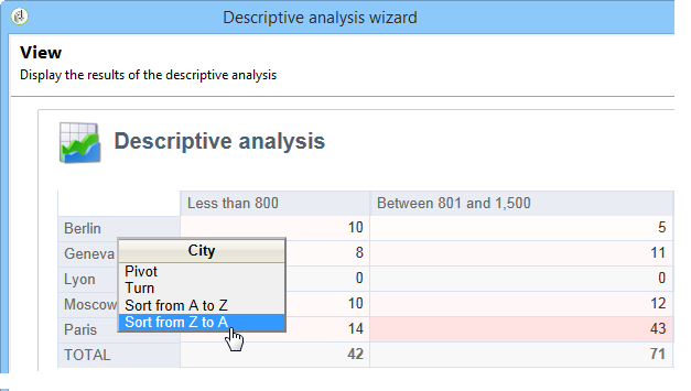 Sort from A to Z 변수 값을 낮은 값에서 높은 값으로 정렬하려면 다음을 수행하십시오.