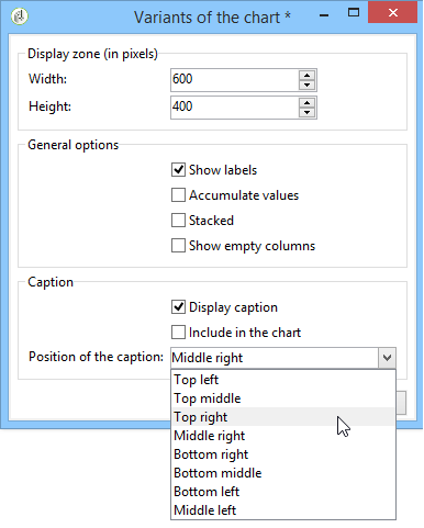 차트에서 데이터 표시를 개인화할 수 있습니다. 이렇게 하려면 Variables… 차트 종류 선택 단계 동안 사용할 수 있는 링크입니다.