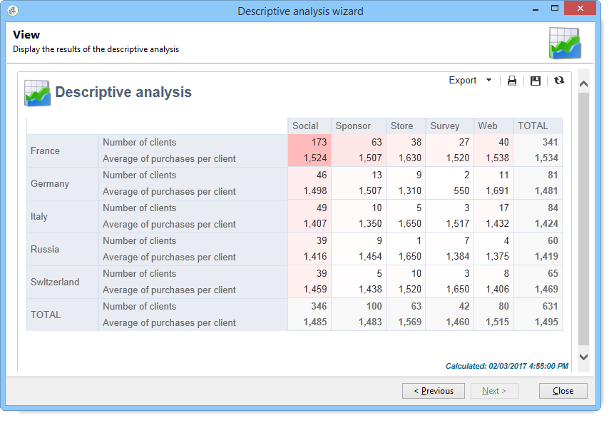 보고서에 테이블이 있으면 계산 결과 셀이 색칠됩니다. 결과가 높을수록 색이 강해진다.