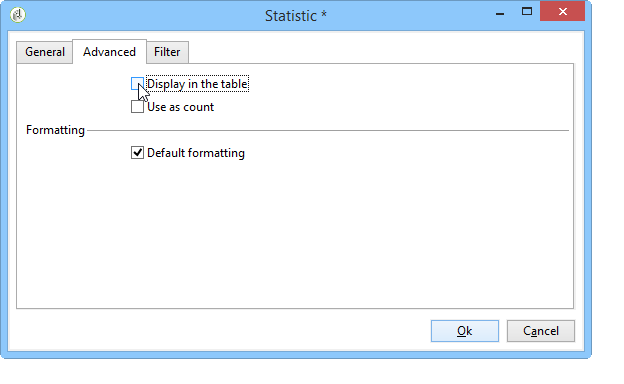이 통계는 테이블에 표시되지 않습니다. 의 선택을 취소해야 합니다 Display in the table 옵션 Advanced 탭.