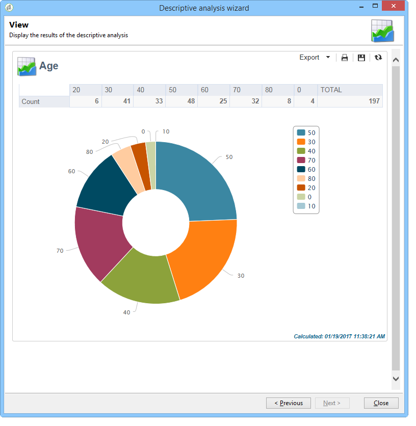 설명 분석 마법사를 사용하여 데이터에 대한 여러 유형의 통계를 계산할 수 있습니다. 기본적으로 단순 카운트는 하나만 구성됩니다.