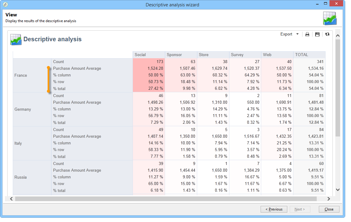 설명 분석 보고서를 생성하려면 전용 마법사를 사용합니다. 구성은 분석할 데이터와 원하는 렌더링에 따라 다릅니다.
