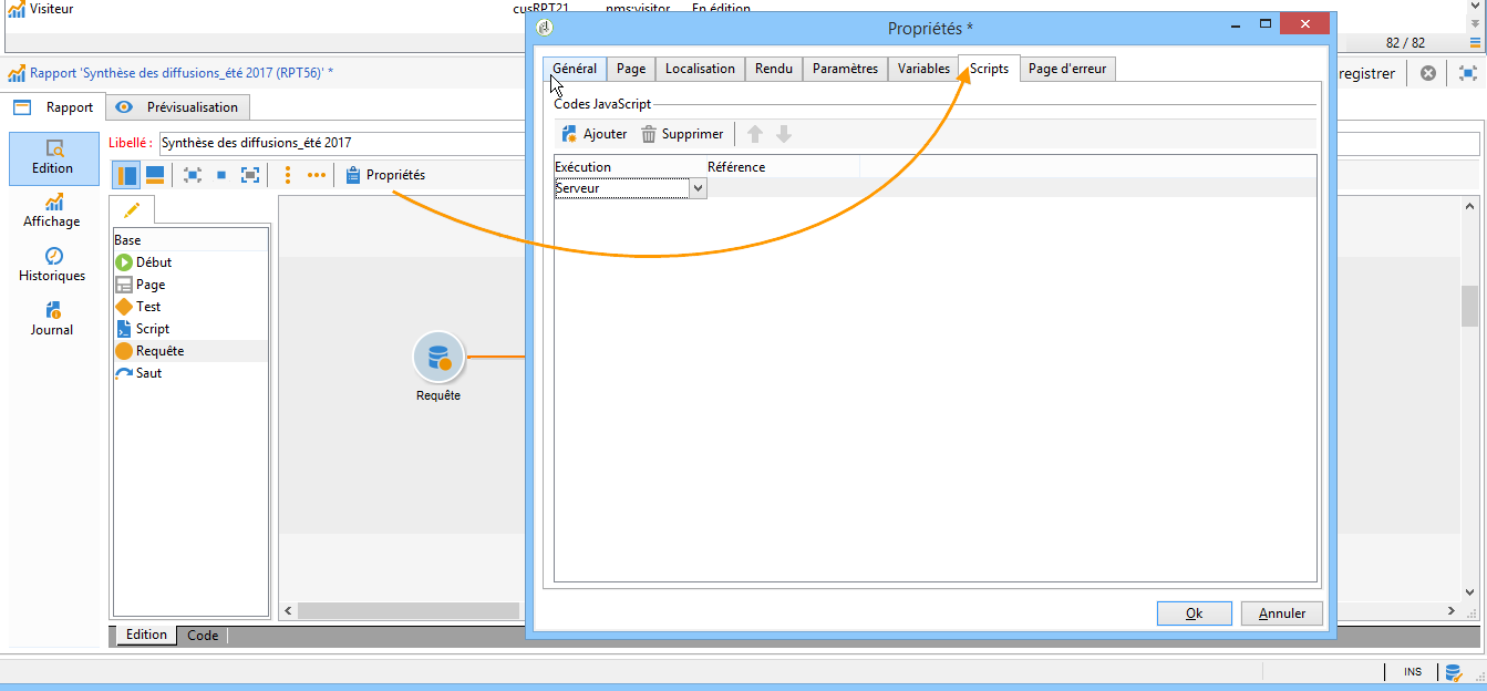 Éditez les propriétés du rapport et cliquez sur l'onglet Scripts.