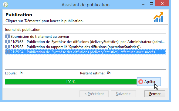 Cliquez sur Démarrer pour lancer la publication.
