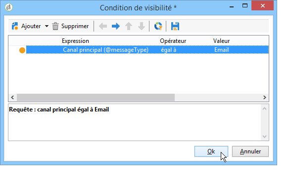 Dans l'exemple ci-dessous la condition d'affichage est que le canal principal de l'opération soit l'email.