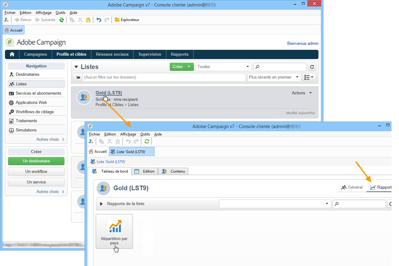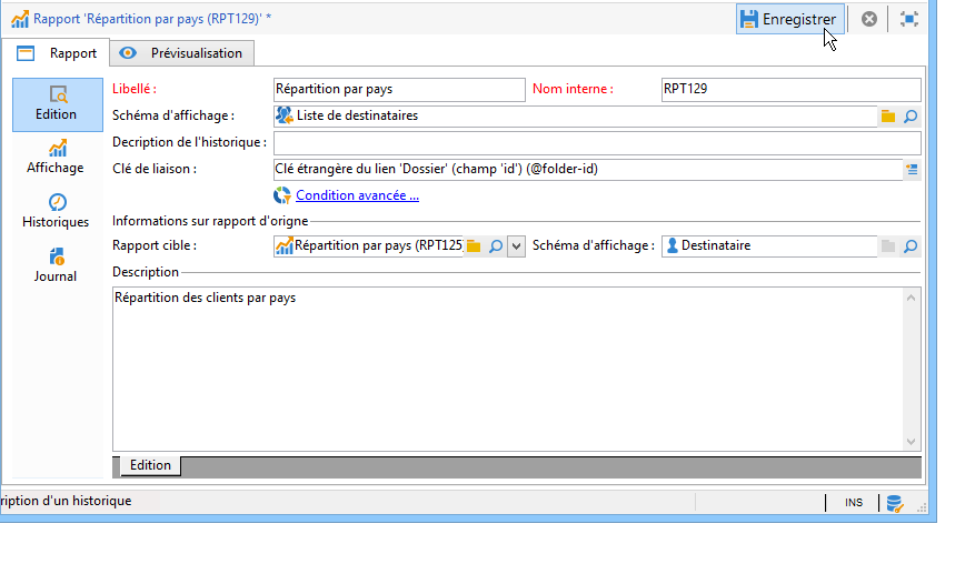 A titre d'exemple, nous allons créer un lien vers un rapport afin qu'il soit accessible depuis une liste de destinataires.