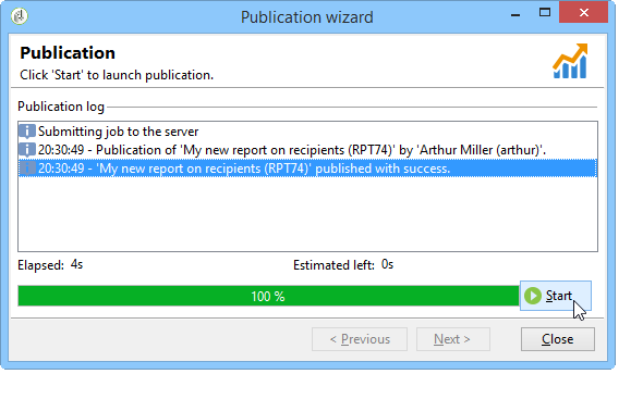 클릭 Start 게시하려면 다음을 수행하십시오.