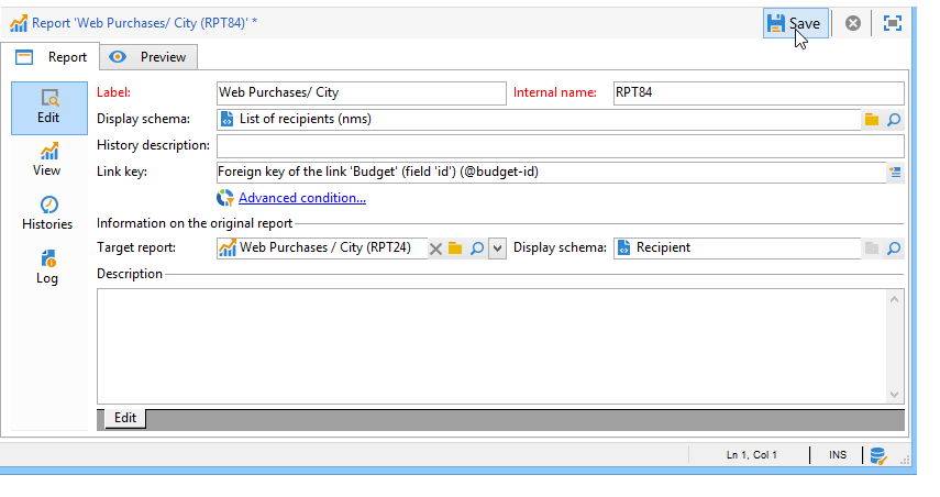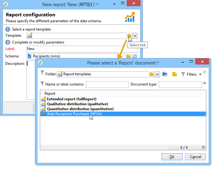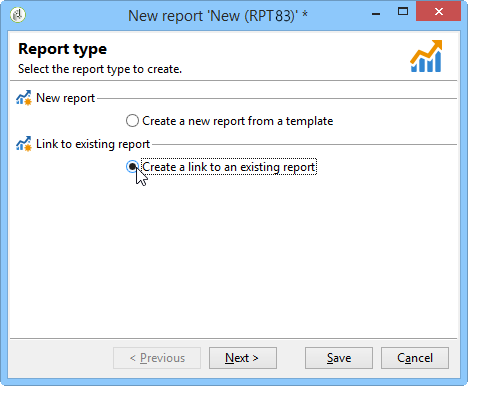 클릭 New 을(를) 선택합니다. Create a link to an existing report 를 클릭합니다.