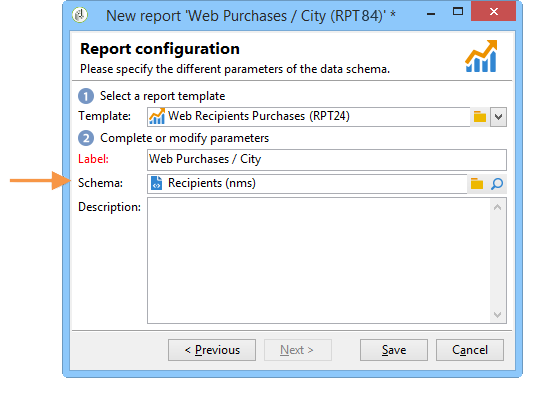 레이블을 입력하고 스키마를 선택합니다. 이 예제에서는 수신자 목록 테이블을 선택합니다.