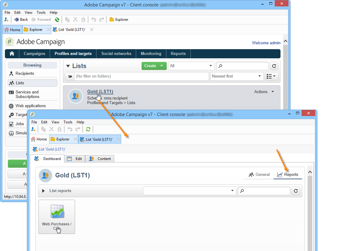 수신자 목록 중 하나로 이동하고 Reports 링크: 방금 만든 보고서에 액세스할 수 있습니다.
