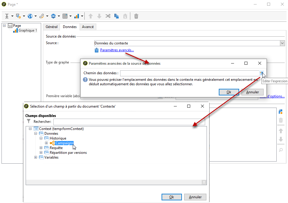 Vous aurez ensuite accès aux données du contexte pour définir les valeurs à afficher dans le graphique :