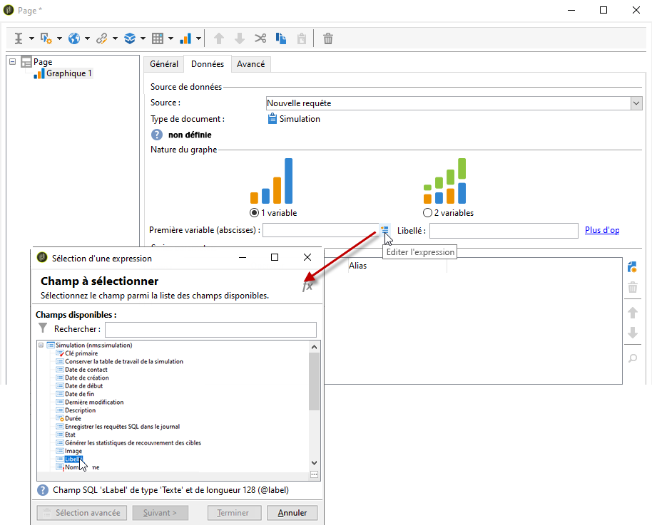 Pour créer un graphique dans un rapport, les étapes sont les suivantes :