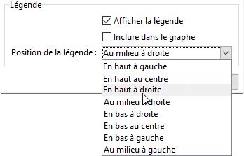 Cochez l'option Afficher la légende pour qu'elle apparaisse avec le graphique. Vous pourrez ainsi en définir la position :
