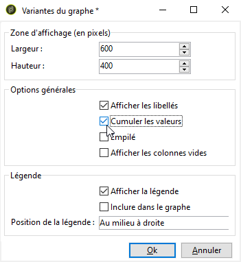 Pour ces types de graphes, les options suivantes sont proposées dans la fenêtre Variantes :