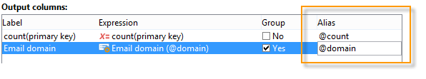 쿼리를 편집하고 출력 열을 정의합니다. 이메일 도메인당 게재 수를 표시하려면 다음을 수행해야 합니다.