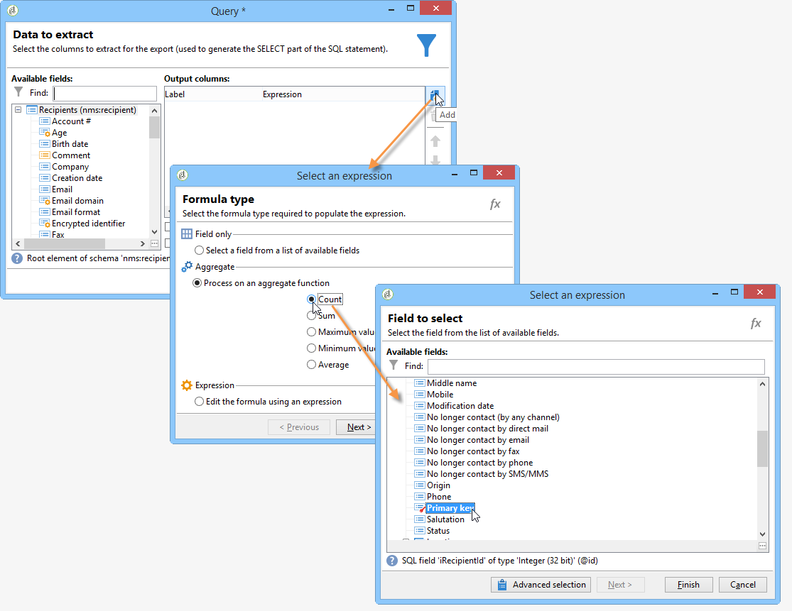 세부 사항 라인의 세 번째 셀에서 count(primary key) 표현식을 사용하여 읽어올 수 있습니다.