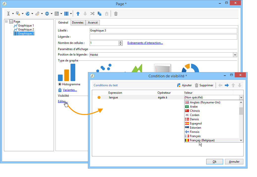 Dans l'exemple suivant, la condition d'affichage dépend de la langue :