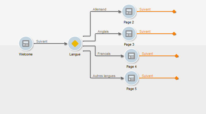 Pour rendre l’affichage d’une ou de plusieurs pages conditionnel, utilisez une activité de type Test. Pour plus dʼinformations, consultez la section Conditionnement de lʼaffichage dʼune page.