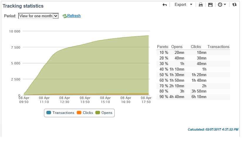 이 보고서는 열기, 클릭 및 트랜잭션에 대한 통계를 제공합니다.