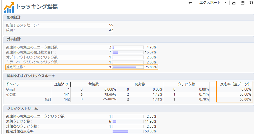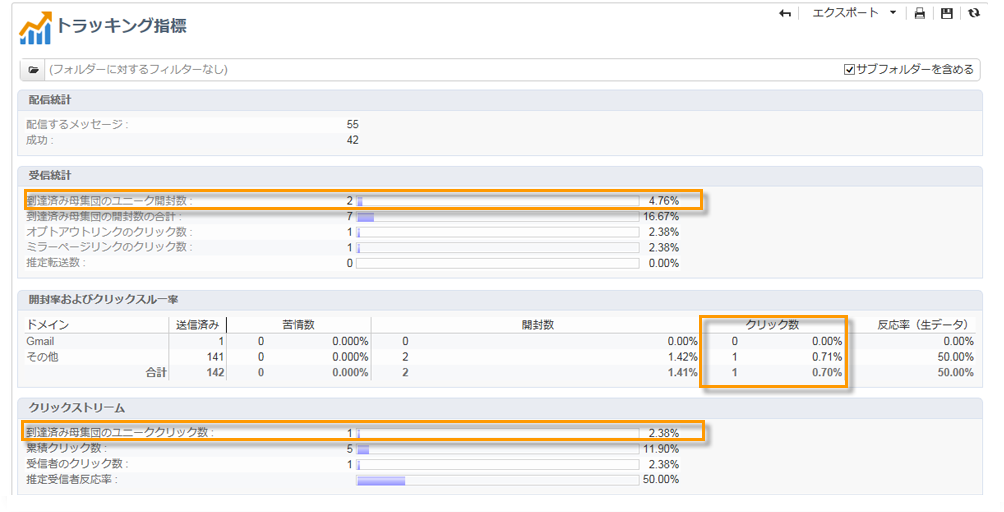 - A は「クリック数」の指標(クリックした受信者数)を表します。