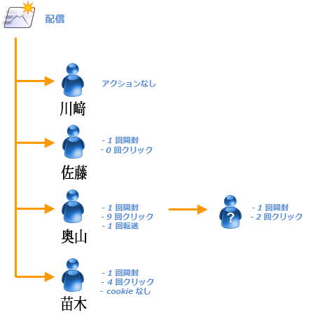 John はメールを開封しておらずクリックもしていないので、ログには表示されません。