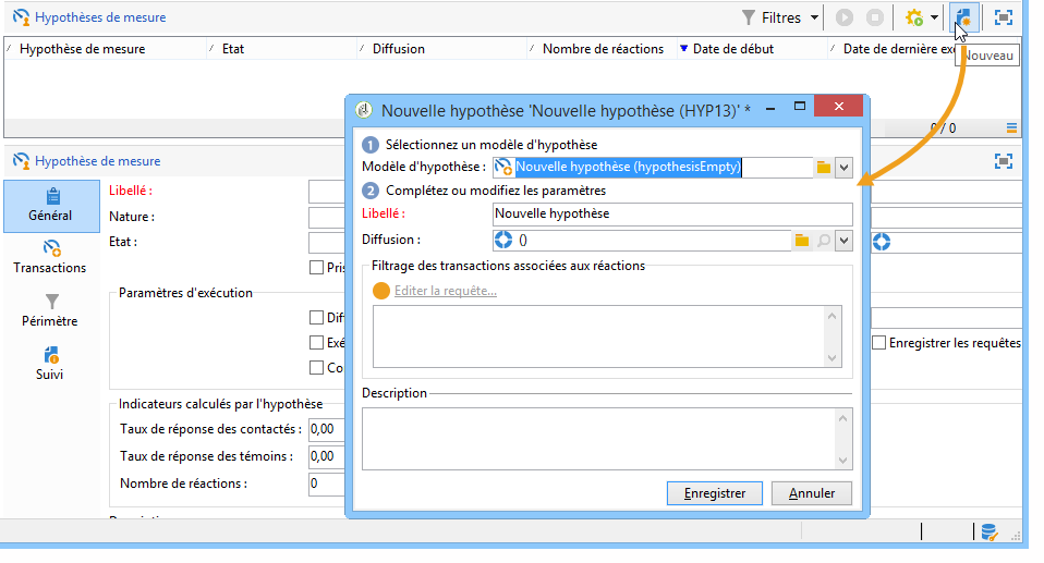Pour créer une hypothèse sur une diffusion existante, procédez comme suit :