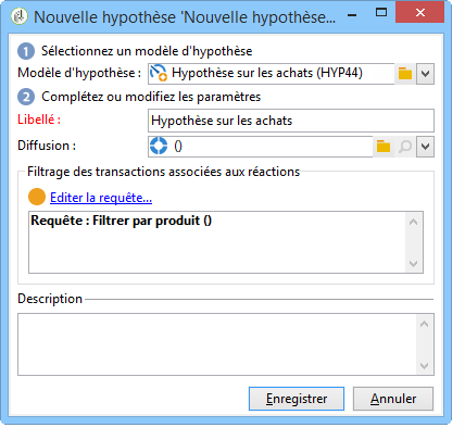 Cliquez sur Editer la requête et affinez la requête en précisant le produit sur lequel va porter l'hypothèse.