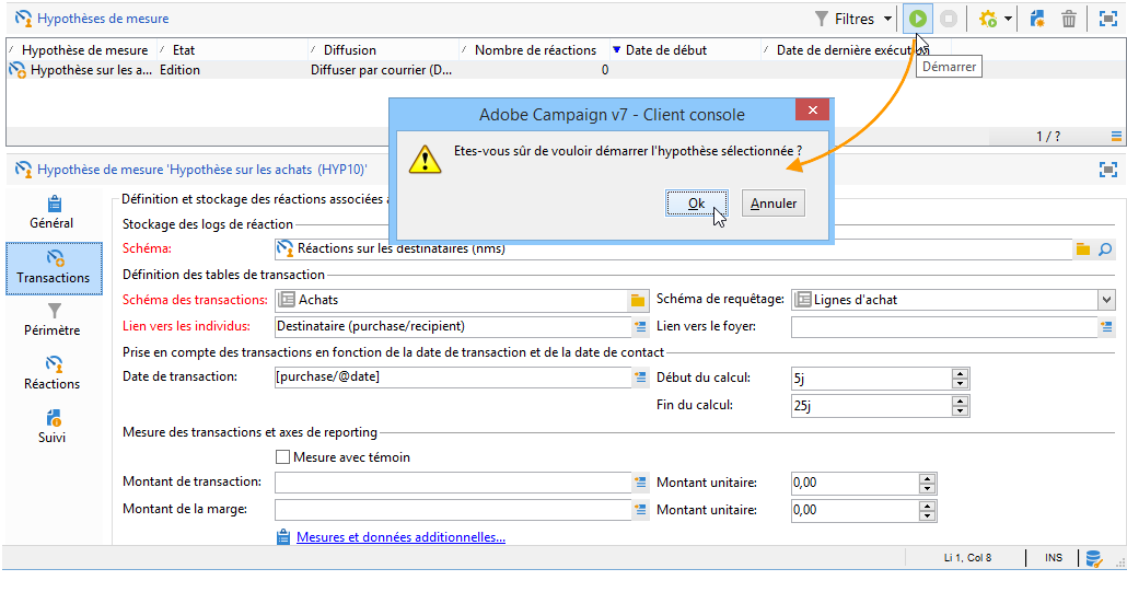 Positionnez-vous au niveau du noeud Gestion de campagne > Hypothèses de mesure.