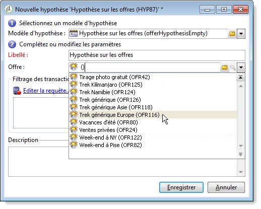 Créez une hypothèse de type Offres en sélectionnant le modèle créé précédemment.