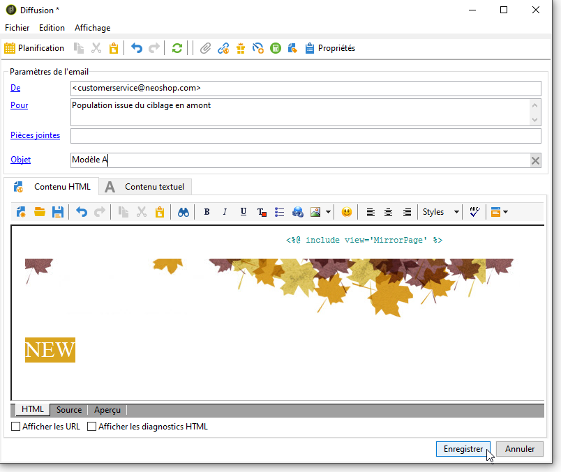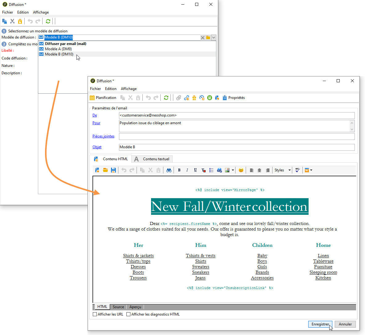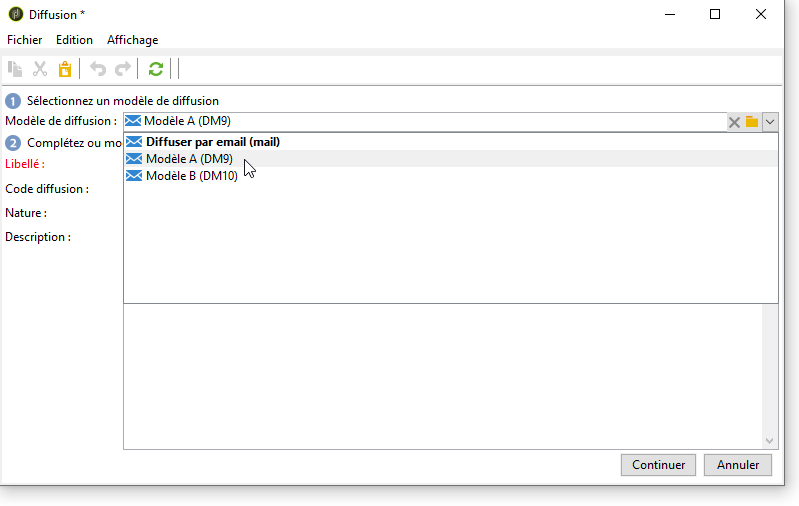 A l'aide de la liste déroulante, sélectionnez le modèle de la diffusion A.