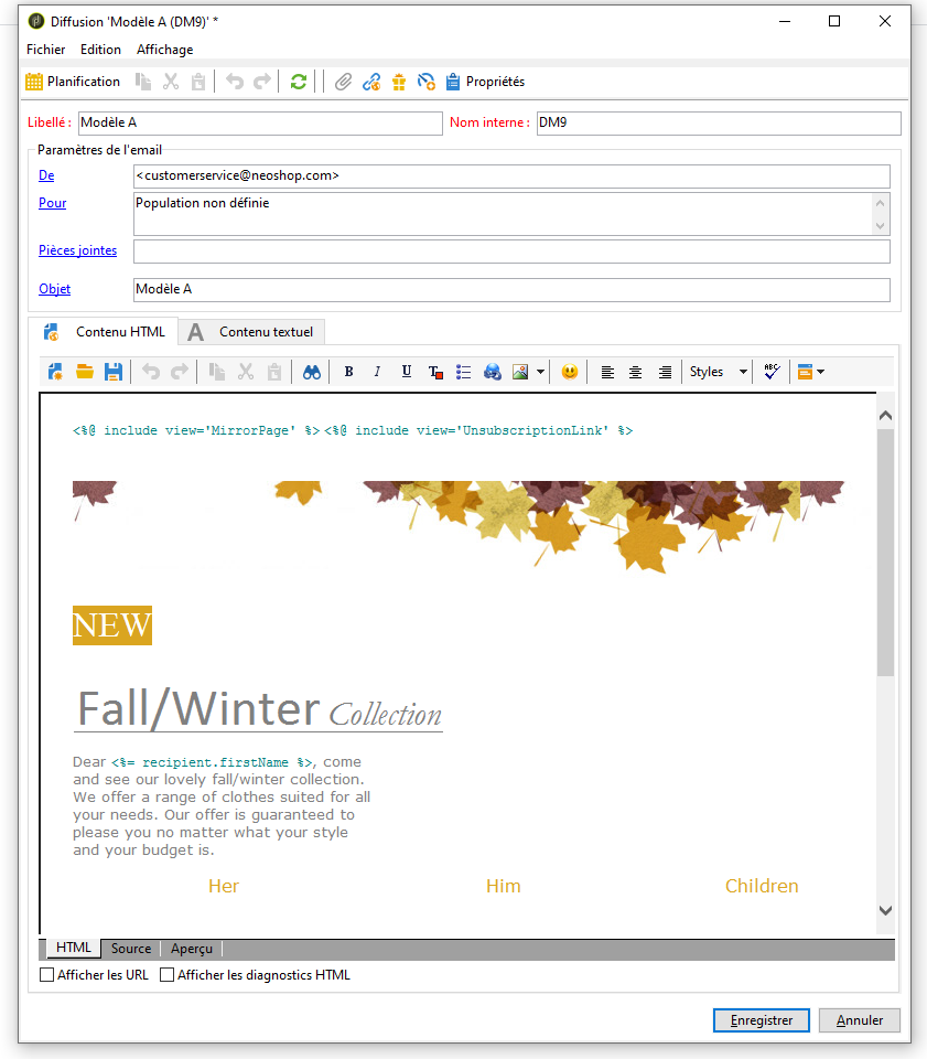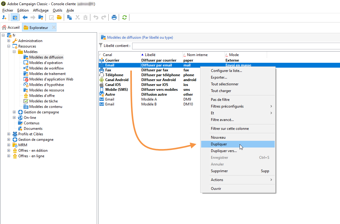 Dupliquez le modèle de diffusion Email.