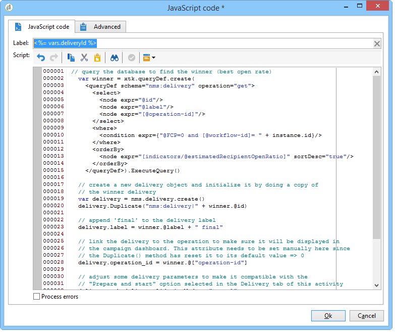 나머지 모집단에 대해 지정된 게재 콘텐츠 선택은 스크립트로 계산됩니다. 이 스크립트는 열림 비율이 가장 높은 게재 관련 정보를 복원하고 컨텐츠를 최종 게재에 복사합니다.