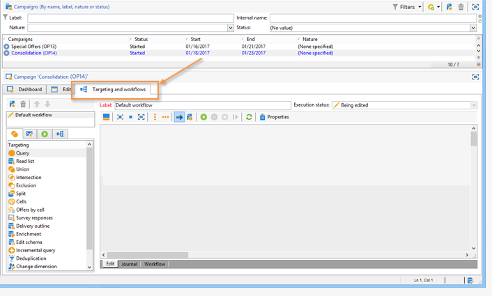 Targeting and Workflows 탭으로 이동합니다.