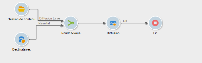 Une activité Rendez-vous a été ajoutée afin de ne lancer la diffusion qu'une fois le requêtage de la cible et la mise à jour du contenu terminés.