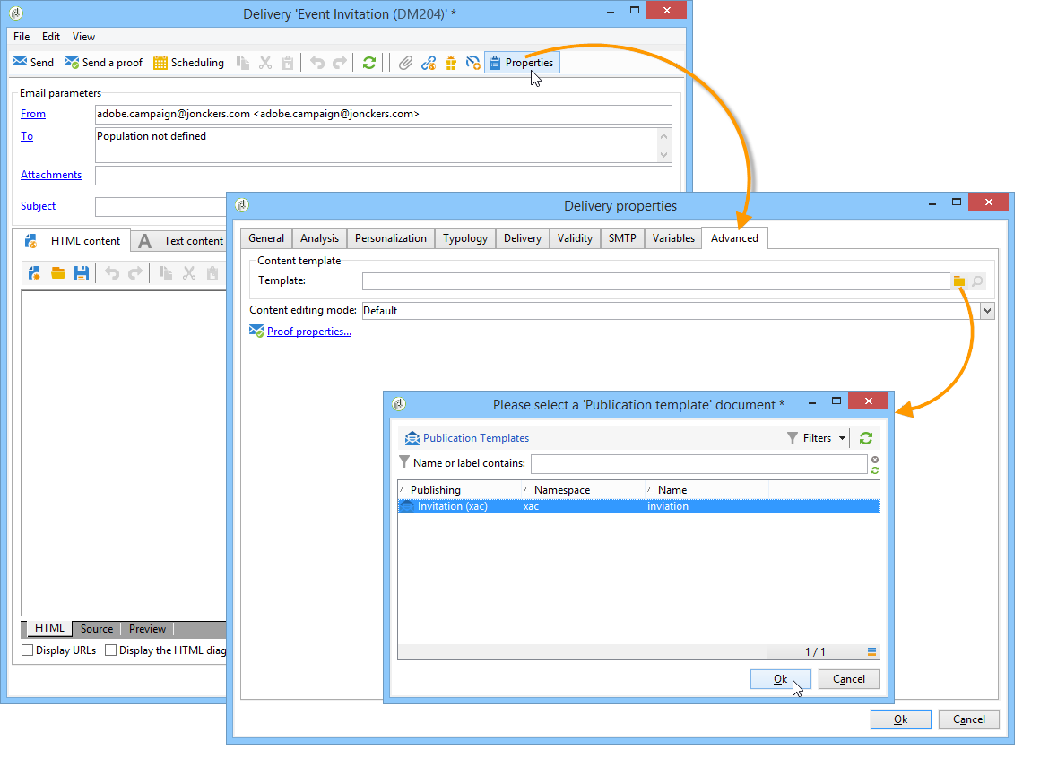 을 통해 게시 템플릿을 참조하는 것으로 시작합니다 Advanced 전달 속성의 탭입니다.