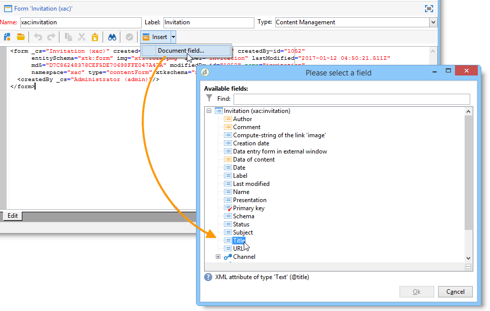 <element label="Invitation" name="invitation" template="ncm:content" xmlChildren="true">
