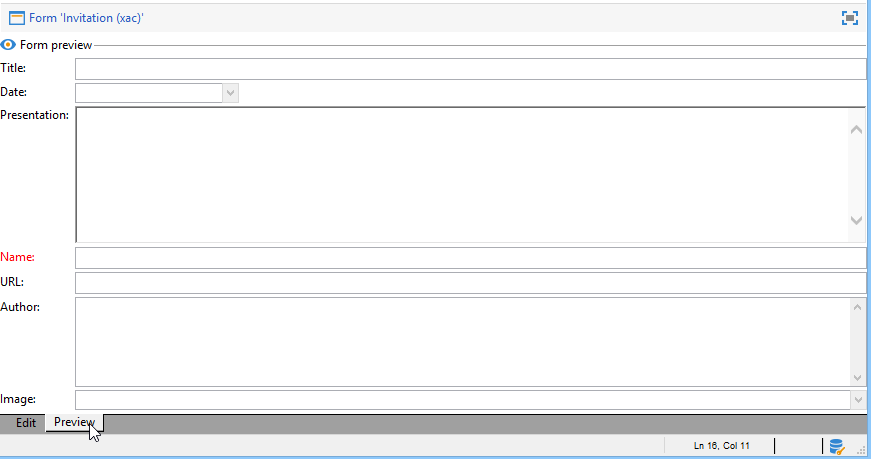 다음 Preview 탭에서는 양식을 편집하는 동안 양식의 렌더링을 확인할 수 있습니다.