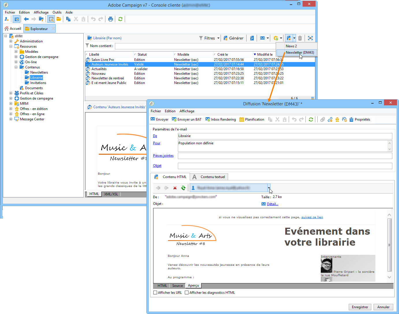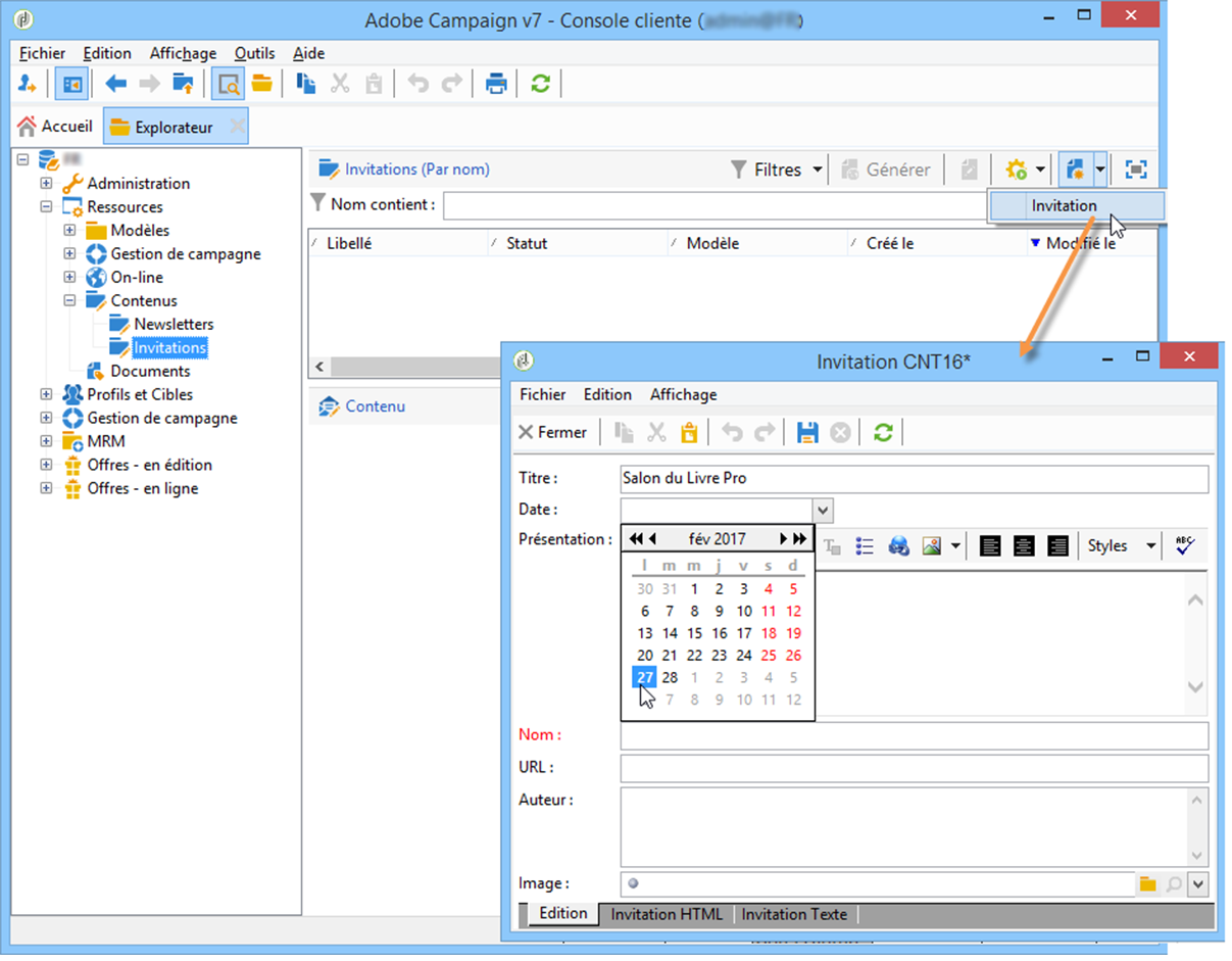 Vous pouvez créer des contenus directement dans l'arborescence Adobe Campaign. Ils pourront ensuite être utilisés dans les workflows, exportés ou directement injectés dans de nouvelles diffusions.