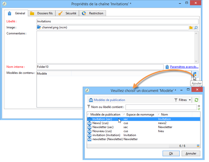 Sélectionnez les modèles de publication qui seront actifs pour ce dossier.