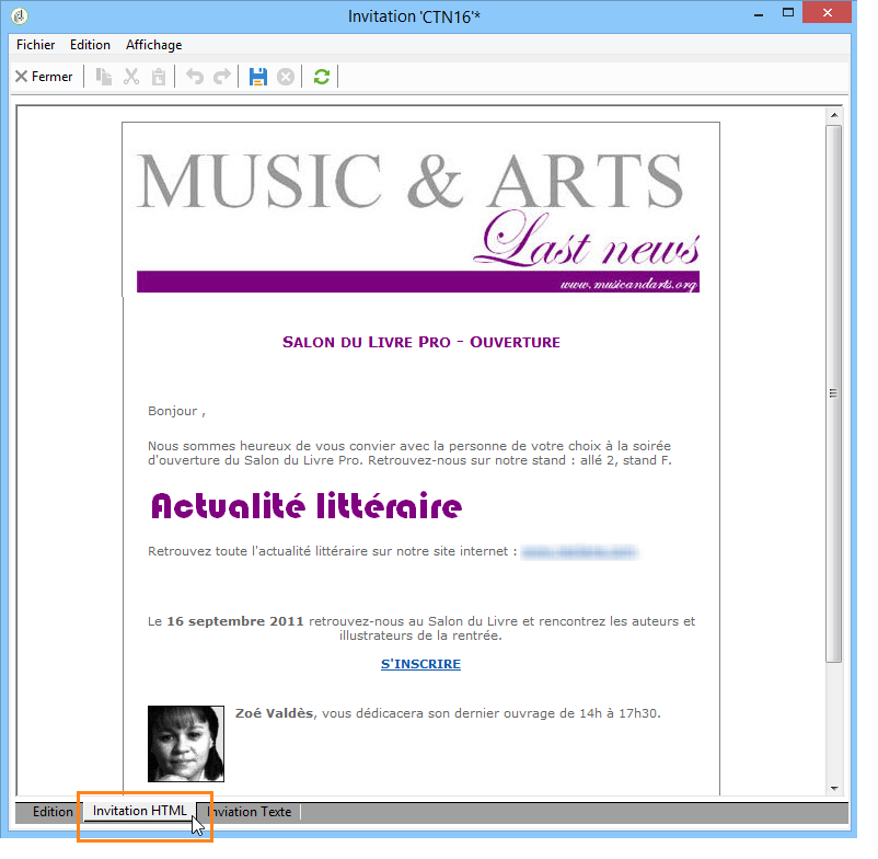 Puis cliquez sur l'onglet Aperçu HTML pour contrôler le rendu. Ici, les champs de personnalisation issus de la base de données ne sont pas renseignés.