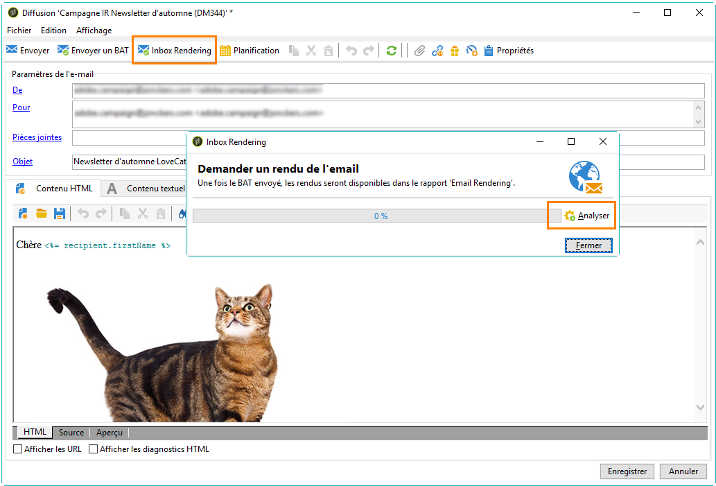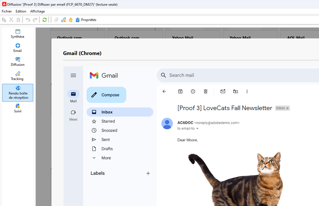L'Inbox rendering n'est pas nécessaire pour tester les personnalisations dans les diffusions. Celles-ci peuvent être vérifiées à l'aide des outils d'Adobe Campaign tels que l'aperçu et les bons à tirer.