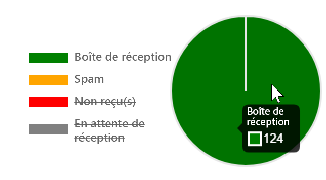 La synthèse générale présente le nombre de messages reçus, indésirables (spam), non reçus ou en attente de réception sous la forme d'une liste et dans une représentation graphique avec un code-couleur.