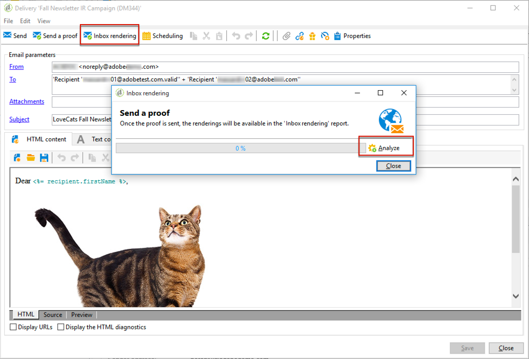 수신함 렌더링은 게재의 개인화를 테스트하는 데 필요하지 않습니다. 다음과 같은 Adobe Campaign 도구로 개인화를 확인할 수 있습니다. Preview 및 증명.