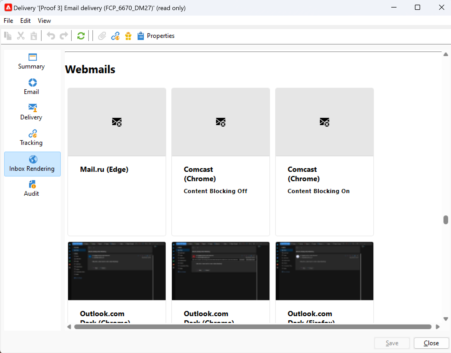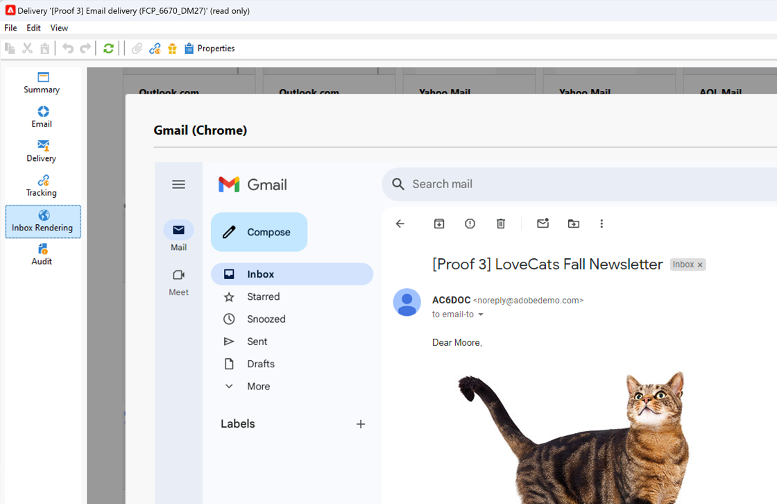 로 이동합니다. 받은 편지함 렌더링 증명의 탭.