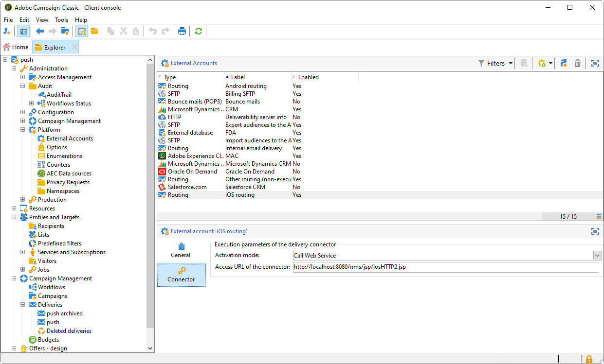 패키지가 설치되면 Adobe Campaign Classic에서 iOS 앱 설정을 정의할 수 있습니다.
