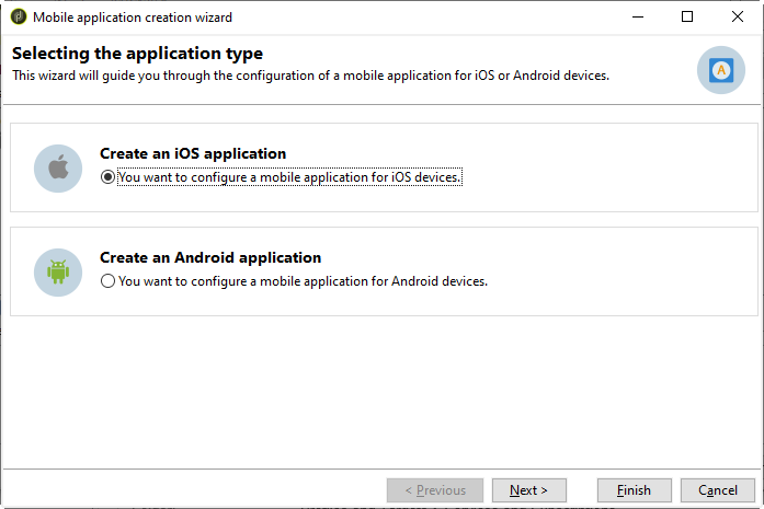 로 이동합니다. Type 필드 및 선택 Mobile application.