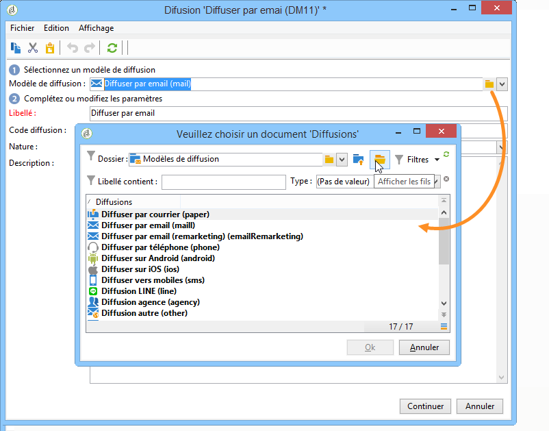 Sélectionnez le modèle de diffusion à utiliser et cliquez sur Ok.